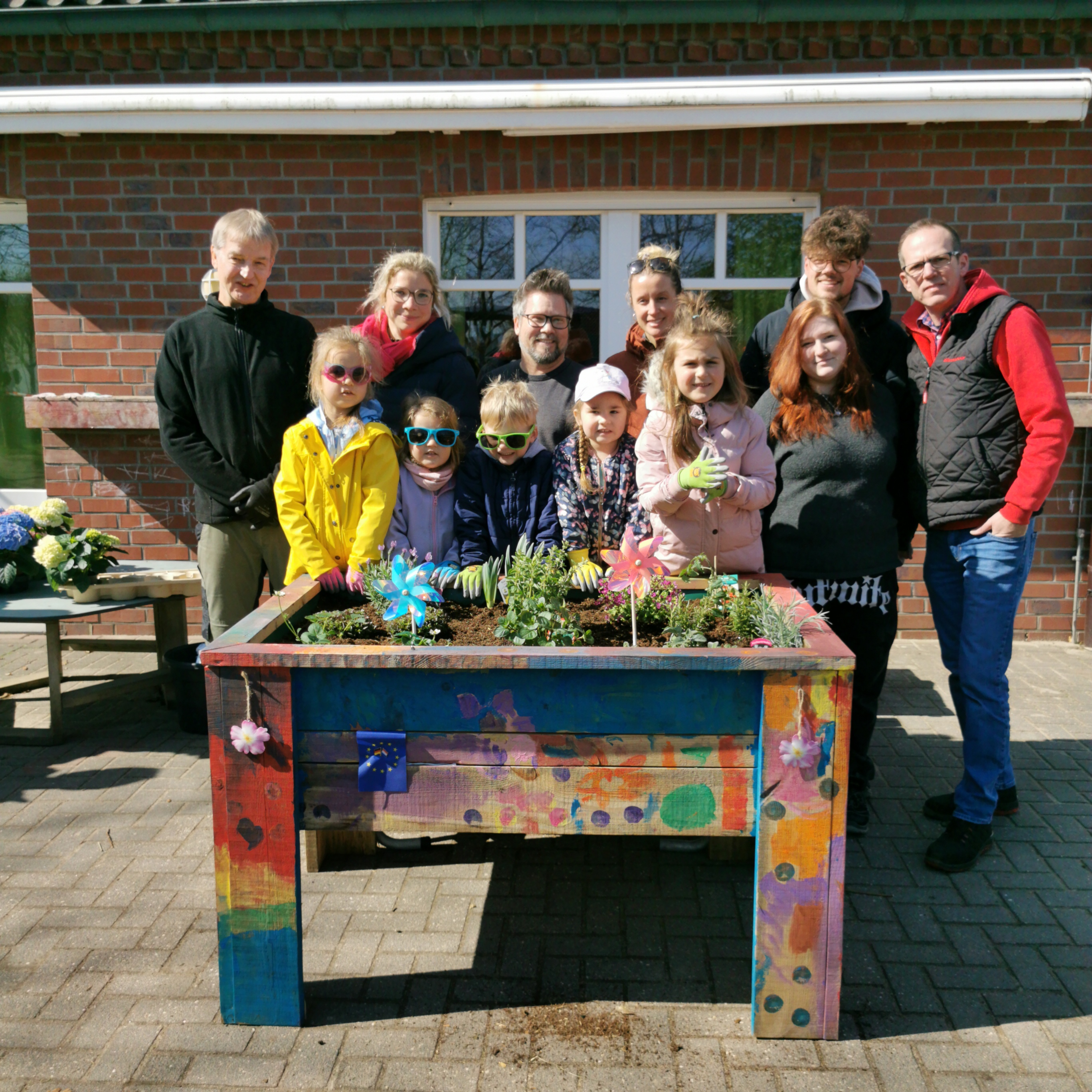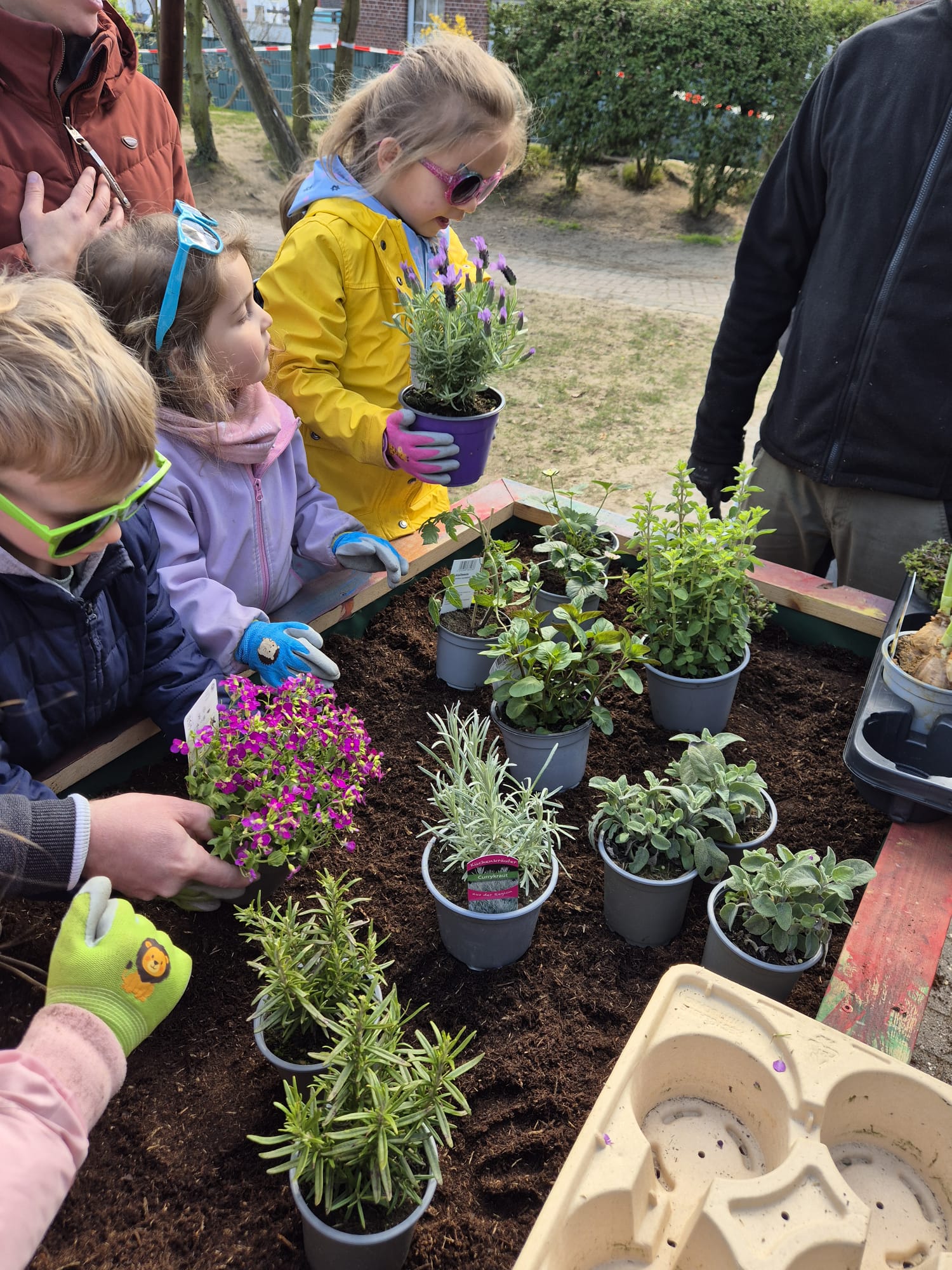 Voorafgaand aan deze dag hadden het Berufsbildungszentrum (BBZ) Geldern, de tuin-AG, de Jugendberufsagentur Kevelaer en Agrobusiness Niederrhein de handen ineengeslagen. De projectpartners brachten bloemen, kruiden en volop aarde mee – het BBZ arriveerde bovendien met betrokken jongeren die enthousiast de handen uit de mouwen staken.