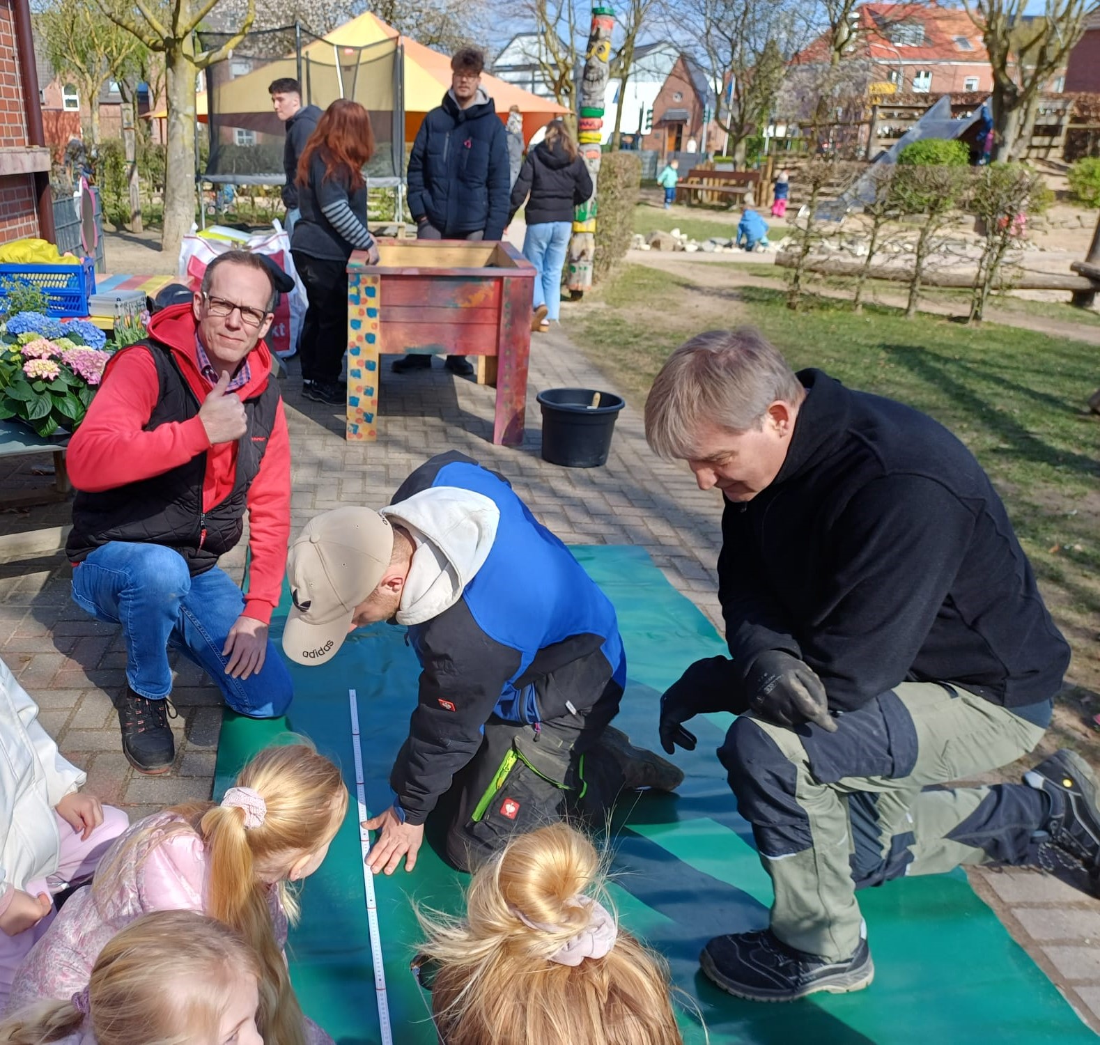 „We komen terug“ – die belofte van vorig jaar is nu ingelost. Toen kreeg kinderopvang Spatzennest een onontworpen verhoogde plantenbak cadeau van de tuin-AG van de Gesamtschule Kevelaer. Inmiddels hebben de kinderen de bak kleurrijk beschilderd en keken ze vol spanning uit naar de gezamenlijke plantdag.