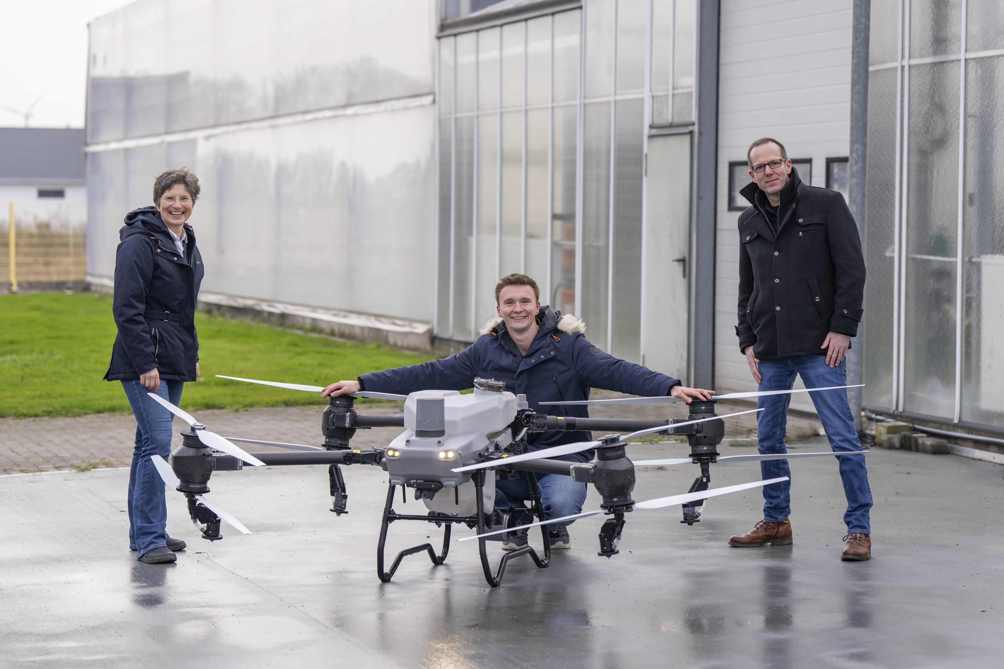 Der Niederrhein ist geprägt vom Gartenbau. Der Wettbewerb ist groß und die Geschwindigkeit, mit der neue Innovationen und technische Entwicklungen auf den Markt kommen, beeindruckend. Ein junger Unternehmer aus Geldern hat das Potenzial der Branche erkannt und sich mit 24Jahren nicht nur erfolgreich in die Selbstständigkeit gewagt, sondern auch sein Hobby zum Beruf gemacht. Mit seinem Betrieb „Drohnen Agrar Service“ war Sebastian Hylewicz im Jahr 2023 der erste Anbieter am Niederrhein und der erste in ganz NRW, der Gewächshäuser mithilfe von Drohnen schattierte – eine Technik, die aufgrund ihrer Vorteile heute kaum noch wegzudenken ist. Seit Kurzem ist der „Drohnen Agrar Service“ Mitglied im Netzwerk Agrobusiness Niederrhein, um sein berufliches Netzwerk zu erweitern und Innovationen in der Region aktiv zu unterstützen. Der erste Austausch mit Dr. Anke Schirocki und Marcus Trappe von Agrobusiness Niederrhein brachten bereits Anknüpfungspunkte im aktuellen Interregprojekt „Agropole Innovates“ und in zukünftigen Projektaktivitäten.